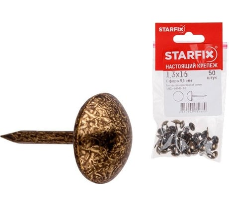 Отзыв Гвозди декоративные STARFIX Сфера 9.5 мм 1.3x16 мм антик, 50 шт. в зип-локе SMZ1-64043-50
