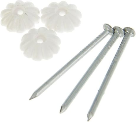 1. Пластиковые шляпки без облоя или наплывов. Все ровные и аккуратные. Головки гвоздей подходят в пазы этих шляпок, что тоже немаловажно для совместимости. 2. Хотелось бы отметить острые наконечники у метизов. В целом, головки круглые. Присутствуют и отчетливо видны насечки. По бокам они тоже есть, хотя и не так заметны.