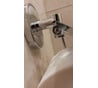 1. Очень тонкий лист металла крышки, пришел с чуть помятым уголком (выпрямил рукой т.к. тонкий металл хорошо гнется). 2. пластина в зоне соединения с осью прутка загнута в диаметр закругления 9 мм, в то время как пруток внутри 6мм. Две втулки скольжения на прутке полиэтиленовые короткие и разброс диаметров загнутой в трубку пластины с осью в 3мм все это приводит к болтанию пластины во всех плоскостях... буду дорабатывать (необходимо вставить две шайбы на пруток 6-мм-овый из полиэтилена в зоне соединения с трубой держаком чтоб исключить болтанку по горизонтали, далее с торцов в загнутую часть пластины которая диаметром 9мм вставить обрезок пластиковой трубки (подойдет кусочек корпуса фломастера или ручки подходящего диаметра) чтоб исключить болтанку по вертикали. 3. Заглушки закрывающие точки крепления саморезов пластиковые серые (хотелось бы чтобы вся деталь розетки крепления к стене была в металле в хроме). Сама розетка крепления к стене тоже из штампованного листового металлаа хромированного в отличие от более дорогих моделей где розетки крепления литые.