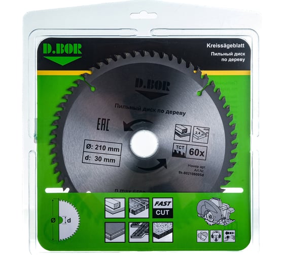 Диск пильный по дереву (210х30/25.4 мм; Z60) D.BOR 9K-802106005D