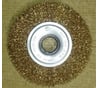 Нормальная щётка. скреплена прочно. Широкая, для хорошей центровки в болгарке желательно установить в отверстие вставку толщиной 5-7мм. Одна из двух щёток немного эксцентриком +- 2мм. Проволока стальная с покрытием.Соблюдать предельные обороты до 4500 об, нужен их регулятор.