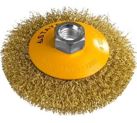 Хорошая, эффективная щетка. Использую совместно с УШМ, имеющей регулировку оборотов с константной электроникой. Обороты ставлю низкими, так безопаснее и эффективнее использование щетки. Повышение оборотов не имеет смысла, так как сильно увеличивает износ щетки при этом площадь зачищенной поверхности металла остается прежней. Настоятельно рекомендую использование средства защиты лица и рук: защитный щиток на лицо и плотные перчатки на руки (я использую сварочные краги)