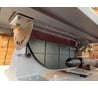 Листы на самоклейке практически одноразовые, в том смысле, что если оторвал, то клей будет сохнуть и второй раз его уже не приклеишь. Есть небольшой люфт направляющей параллельного упора, буквально 0.5-0.7 мм. Не очень удобно сделано выключение - для этого надо крышку с кнопкой как бы защелкнуть в корпус, просто ладонью выключить - если только с силой ударить по кнопке, но долго так конструкция не продержится. Пока не очень понятно как сделать соединение с аспирацией, какой-то очень большой диаметр патрубка.