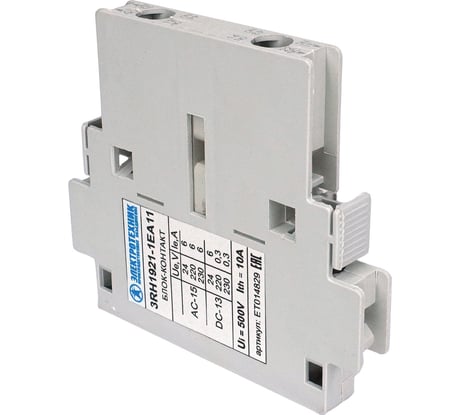 Отзыв Блок-контакт Электротехник 3RH1921-1EA11, 1НО и 1НЗ, для контакторов типоразмеров S0…S3, боковой, винтовые клеммы, IP20 ET014829