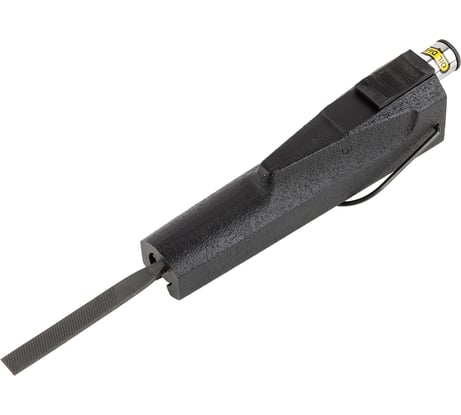 Работает и при более низких давлениях. Надфили зажимаются обычным винтом, поэтому можно взять любой надфиль с ножкой 6мм и меньше и спокойно зажать. Переключатель включения очень легко сдвигается. Инструмент можно зажать в струбцину.