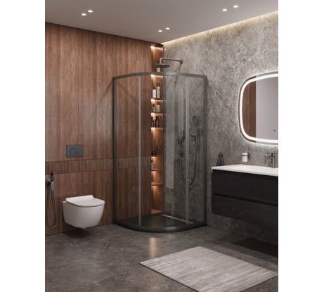 Хорошая шторка, надежно упакована, без сколов. Для установки нужно 2 человека, тяжелое стекло. Раздваивается на 80 см, этого хватает чтобы защитить тумбу от намокания, но вода с верхнего душа летит на пол. Вылетает ролик , но тут наверное вопросы к установщикам.
