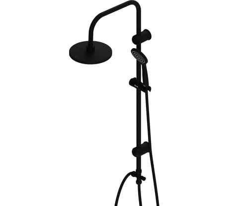Функциональная душевая система. Душевая стойка усиливает напор воды и распределяет ее между двумя лейками. Можно менять ее высоту. Смеситель хорошо смешивает воду. Рычаг плавный.