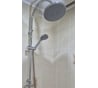 хорошая душевая система, работает хорошо, тропический душ радует, струи мягкие. В целом доволен. Плюсы: Нормальный вынос от стены (320мм) в самый раз, меньше как мне кажется уже не удобно, приходится стоять вплотную к смесителю. Возможность установить настенные крепления на произвольном расстоянии в диапазоне от 550 до 700мм(хотя в инструкции сказано до 600) несомненный плюс и позволяет установить систему в уже имеющиеся отверстия, не делая новых, что облегчает установку. Так же в описании не указано, но лейка тропического душа, на шарнире т.е. поворотная с возможностью установить под любым углом и повернуть в любом положении. Ручной душ надёжно крепится в держателе, сам держатель тоже приличного качества.(обычно с этим проблемы) Достаточно экономный расход воды.