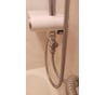 Разные режимы струи в ручной лейке. Верхний душ вплотную к штанге, что позволяет повесить в квартирах с невысоким потолком и высоким ростом людей.