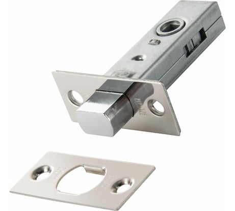 Обычная защелка. Из минусов только слишком все точно надо ставить. Нет зазоров между язычком и приемной частью на коробке. Если дверь, чуть просядет, то придется заново регулировать.