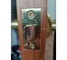 Пластиковая заглушка, которая вставляется в ответную, часть замка белого цвета и очень сильно бросается в глаза на черном фоне косяка и ответной части, пришлось маркером закрашивать