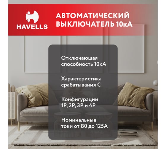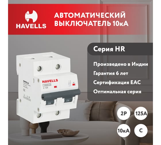 Автоматический выключатель Havells 2P, 10kA, C-125A, 3M. 7701622