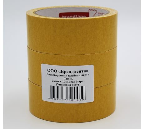 Отзыв Двухсторонняя клейкая лента Brandtape ткань 36мм х 10м (упаковка 3 шт.) 4631177461019