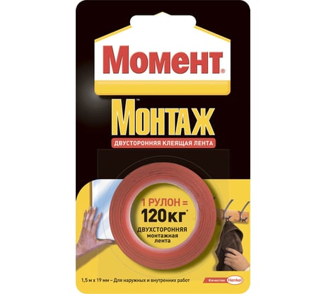 Отзыв о двусторонней монтажной клеящей ленте МОМЕНТ 1.5 м 80 кг на едбл Б0023004