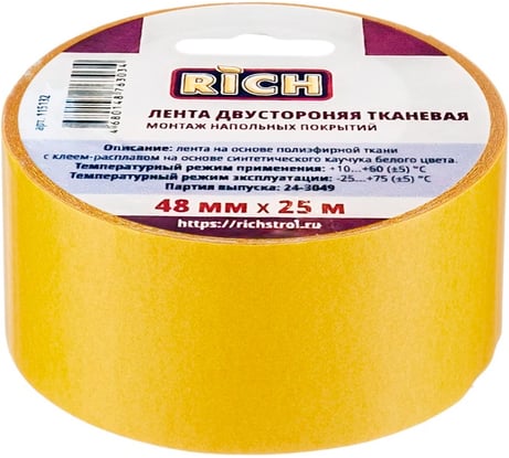 Отзыв Лента двухсторонняя на тканевой основе RICH 48 мм х 25 м 115132