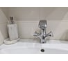 Интересный дизайн с двумя кранами. По параметрам высота и длина излива очень удобен. Полностью соответствует заявленным характеристикам.