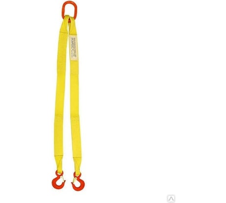 Жёлтая стропа рассчитана на номинальную нагрузку в три тонны. Так как эта стропа относительно короткая, то сшита она таким образом, что по сути лента сложена в два раза. Клеймо, бирка, всё присутствует. Если что, то скорее не выдержит какая-нибудь металлическая часть, но при номинальной нагрузке это вряд ли произойдёт.