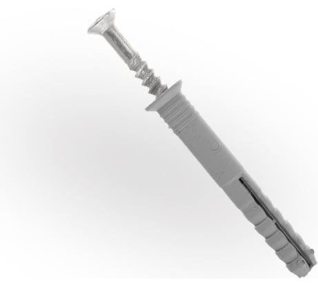 Внутренний кончик самого дюпеля с прорезью и его D=6.5 (в свободном состоянии). В средней части дюпеля D=6.3 - это надо иметь ввиду, когда сверлишь отверстие в стене, хотя D у буров обычно больше их номинала. При вбитом гвозде у конца D=8.5 - распирает хорошо, а значит и закливание обеспечено. У гвозьдя (оцинкован, резьба плохая - за это минус звезда) в его цилиндпической части d=3.5 - маловато для работы и на растяжение и на срез. Шлябка у гвоздя D=8.0 (под биту PZ2), грибок D=8.8. По итогу - на 5-6 этих изделиях можно при крутить к стене что-нибудь в пределах 10кгс с вектором усилия в направлении вдоль стены.