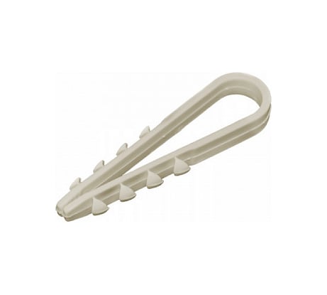 Хороший дюбель-хомут. Удобно прокладывать кабель. Размер оптимальный под двухжильный кабель для освещения. Сверло 6мм, держится дюбель отлично, вырывать только плоскогубцами, руками не вытянешь.