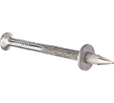 Наличие прижимной грибовидной манжеты. Специальная резьба у метиза. Удобный формат в виде гвоздя, который можно забивать и даже незначительно регулировать. Наконечник острый.