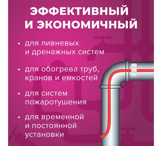 Греющий кабель внутрь трубы Хитус 12 м PerfectJet 156 Вт HAPF13012