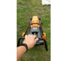 Отличная игрушка в хорошем смысле. Многого не ждал, нужна простота и компактность. Со сложенной ручкой входит в багажник. Косит хорошо (небольшая лужайка перед входом в дом и газончик для шашлыков во дворе). Плавающее напряжение в сети не мешает.