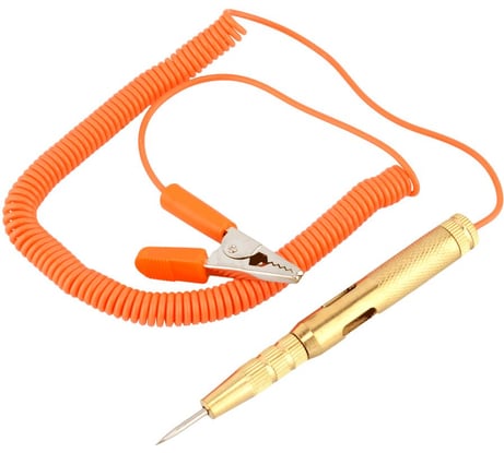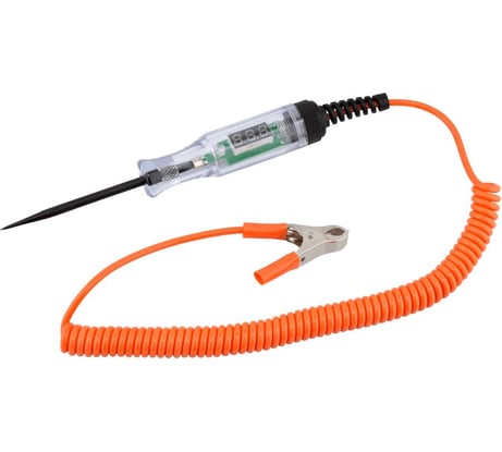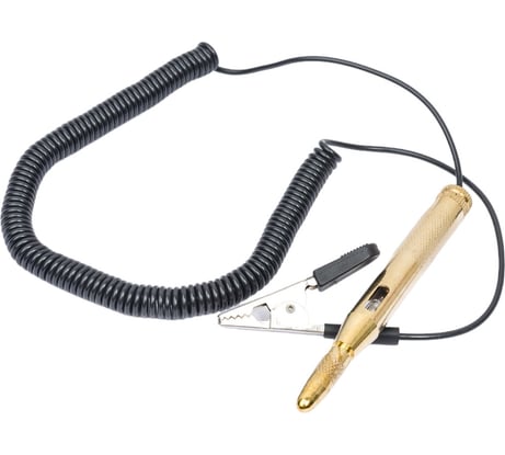 Спиральный шнур. Индикатор загарается синим при касании иглы к минусу или красным при касании к плюсу.