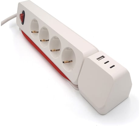Отзыв Удлинитель ООО "ОПТИКОМ ЭЛЕКТРИК" 4 гнезда 16a, с заземлением и выключателем, usb + 2 type c 3,4a 1284.4201
