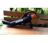 Покупал на основе отзывов. Аппаратом доволен, мощность на выдув и всасывание отличная, уборка двора и садового участка от мусора занимает намного меньше времени. Сдувает не только легкий мусор но и песок с мелкими камнями. Регулировка воздушного потока на этом аппарате производится механически, ступенчато, путем перекрытия выходного отверстия (на аппаратах других фирм обычно электронная регулировка оборотов двигателя). Если не уменьшить выходной поток воздуха то листву собрать в кучу с последующим измельчением не реально, разлетается в разные стороны. На минимальной регулировке заслонки, можно это сделать. На мощность всасывания регулировка не влияет. Об особенностях: 1. При покупке смущал изогнутый всасывающий патрубок, форма рукоятки и отсутствие колесиков как на других моделях. Но после покупки выяснилось что эти сомнения напрасны, при моем росте 187см, не удобств в эксплуатации не заметил. Эргономика понравилась. 2. При работе в режиме всасывания сухой листвы наплечная сумка раздувается и пылит с наружной части, так как наружная часть ее выполнена из легко-воздухопроницаемой ткани а внутренняя часть, которая прилегает к телу, продублирована клеенчатым материалом. Если поставить менее воздухопроницаемый материал, то это отрицательно скажется на мощности всасывания. 3. После работы на поверхности аппарата скапливается много пыли, так во время всасывания сухой листвы в результате трения о пластик образуется статическое напряжение которое и притягивает пыль. Не люблю грязный инструмент, поэтому приходится тереть тряпкой, надо попробовать применить антистатик. 4. Кабель электропитания конечно накладывает свои неудобства, пришлось еще купить дополнительную переноску. Резюме. Не смотря на все вышеизложенное аппаратом доволен.