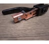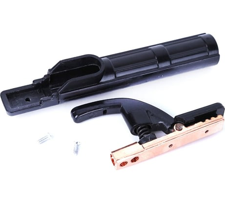 Хороший зажим. Пружина очень мощная - электрод точно не выскочит. Пластик крепкий. Материал НЕ МАГНИТИТСЯ, скорее всего - действительно латунь. Из минусов - крепление кабеля - болт, на кабель надо напрессовывать наконечник, "своего" зажима провода нет. Ну и - на мой взгляд - бестолково сделано крепление корпуса держака. Вообще вещь с виду ну сильно топорно сделана, но в руке держишь - нормально, надежно. Ну а красота - не в рамку же вставлять...