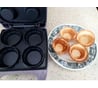 К праздникам постоянная проблема выбора и покупки тарталеток. То с маргарином, то из вафельного теста размокают сразу. Решил купить тарталетницу самому делать. Прибор просто замечательный, на четыре тарталетки, не пригорают, можно приготовить "альденте" и доготовить с начинкой в духовке. Объём тарталеток средний, и начинку с сыром и икрой, салатом, и жульен подходит.