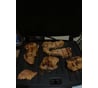 Присутствует запах изделия,наверное не до конца прогорела,быстро нагревается,удобно,что нагрев и с низу,и с верху.Хорошо,что высокая форма для пиццы,много поместилось продуктов в тесто,даёт возможность ему подняться