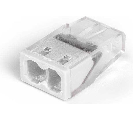 Компактная и при том надёжная клемма. Хорошо подходит для бескоробочного монтажа, когда мало места в подрозетниках для коммутации