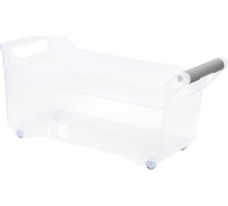 Контейнер на колесиках,точно встал в полку шкафа, храню там всякие средства, так они точно не испачкают шкаф. И не смотря на общую тяжесть за ручку можно легко вытянуть контейнер и достать средство.