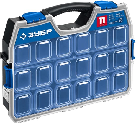 Отличный органайзер! Конечно не Dewalt или Inforce, но и цена в несколько раз ниже. Есть уже два таких один в один только свинцового цвета, один Энкор,а другой Blocker и брал я их дороже. Так вот этот Зубр абсолютно такой же, но дешевле и самое главное что они стыкуются между собой невзирая на то что бренды разные))) И просто отлично что Зубр в синем цвете и будет проще метизы различать сразу по цвету ящика где что лежит.