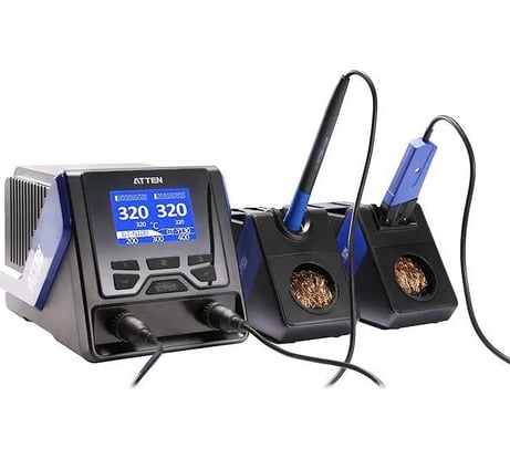 На фото моя бывшая "паяльная станция" - легендарный ЭПСН-25. Паял бы им, но достало плавающее напряжение в розетке, частенько он не мог разогреться. Поэтому решил купить станцию. Доволен, как слон ), стабильная температура жала и не важно, какое напряжение на данный момент в сети. Диапазон температур вполне шикарный, распаиваются даже "кетайские" платы с припоем, который раньше мог взять только строительным термофеном. Ну и свои платы пропаивать удобно - в обычном режиме тонкие дорожки, а земляные пошире - чуть прибавил температурки, и не надо долго прогревать плату, как делал ЭПСНом. Да, в отзывах говорят про "жестковатый" провод паяльника - похоже, дело вкуса. Для меня он вполне неплохой. Проработал, может и не долго, всего месяц после приобретения, но ни разу этот провод не вызвал каких-то неудобств. Да, для меня есть один недостаток - я левша, поэтому станция располагается слева. И слева к станции, которая и так слева ))), прикручивается "корзинка" для припоя. В общем, для меня бесполезная примочка оказалась, хотя, возможно, вполне удобная.