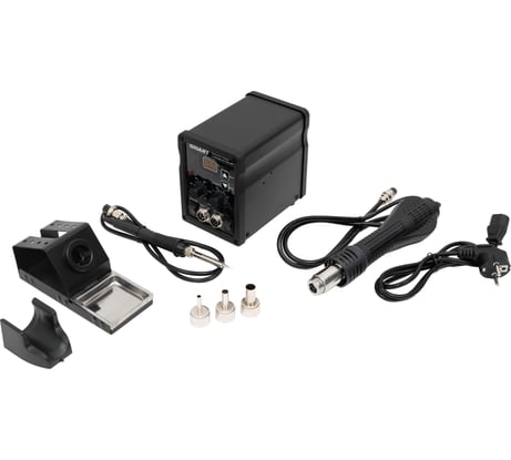Отличный комплект - паяльник, фен, подставки, насадки для фена. Не хватило других насадок на паяльник, но я спокойно использовал оставшиеся от прошлой станции element, подходят. Греется быстро, на регулировку температуры фен и паяльник откликаются хорошо.