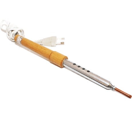 -Медное жало ф5мм достаточно длинное (у меня 25мм) -Хорошо держит температуру -Деревянная ручка не нагревается -Цена