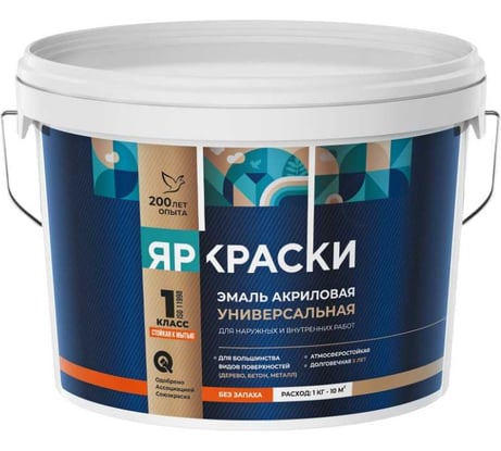 Универсальная акриловая эмаль на водной основе. Можно красить всё что угодно, и внутри, и на улице, и это без запаха. Но основание должно быть прочным и не осыпающимся.