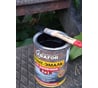 Банка легко открылась с помощью чайной ложки. Без перекосов. И также лего закрывается. Запах умеренный. Высохла при +10 градусах вечером и начавшейся росе за 3 часа. Может и быстрее, через три проверил. Запах умеренный, быстро выветривается. Цвет соответствует заявленному. Ложится хорошо.