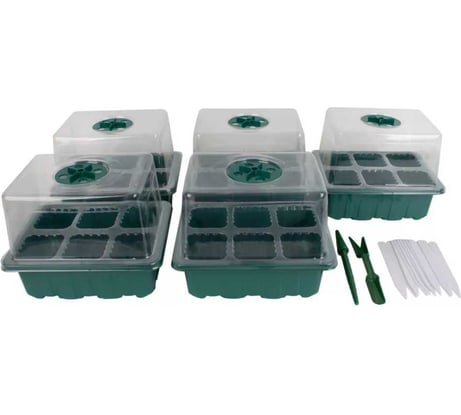 Отзыв Набор мини-парников для рассады GARDEN SHOW 5 штук, вставка по 6 ячеек, зеленый 266529