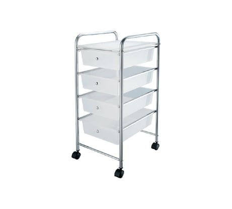 Верхняя полка перфорирована, две дуги крепятся поперечинами через болты. Тумбочки 4/5 ящиков отличаются только высотой.