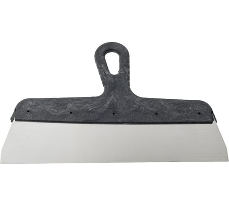 Удобный шпатель для внутренних работ, закупил сразу несколько, так как профессионально занимаюсь ремонтом и стройкой. Шпатель хорошо и равномерно распределяет смесь на стене, в руке комфортно держать, рука не устает, рукоятка не натирает. Сама сталь прочная, не гнется при наборе большого количества смеси.