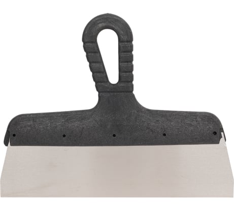 Нужен был именно широкий шпатель для выравнивания шпаклёвки при отделке стен. Этот подошёл как раз подошёл по размерам. Металл довольно жёсткий, прочный, не гнётся и не ржавеет после мытья. Ручка держится крепко, рифленая, поэтому в руке не скользит.