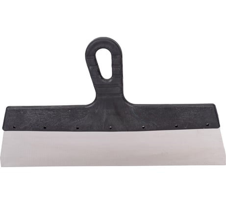 Прочный качественный шпатель. Ручка алюминиевая с резиновым покрытием. Долго не сломается, удобно ложится в руку.