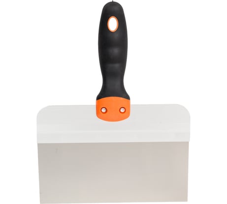 Хороший, качественный шпатель. Самое широкое лезвие, которое нашел. Скруглил кромку по радиусу строительного ведра, использую для штукатурки. Тяжелую цементную пережил без проблем, лезвие жесткое, позволяет брать и накидывать сразу много раствора.