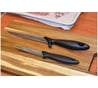 Простой кухонный нож, который не жалко затупить. Брал в комплект такому же Эссенталу в 10см (малый фрутоножик-овощник), у которого такая же сталь, удобная рукоять и размер лезвия.