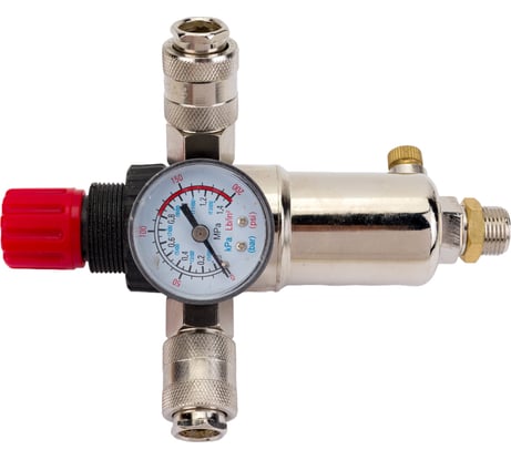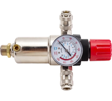 - Металлический корпус - большой диаметр на входе: 1/2 - удобный слив конденсата - очень удобная и компактная сборка:регулятор давления, 2 фитинга, манометр, сепаратор - стопорная гайка, чтобы зафиксировать поворот сепаратора -