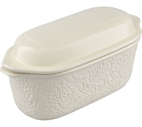 Очень элегантная форма, белый цвет с тонким рельефом выглядит как антикварная вещь. Хлеб в ней пропекается равномерно, а корочка получается хрустящей со всех сторон благодаря толстым стенкам. После десятка использований нет ни сколов, ни пятен, мою просто в теплой воде. Тяжеловата, но для меня это плюс, чувствуется добротность.