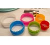 Нормальные пластиковые формочки разных диаметров. С одной стороны они рифленые, а с другой стороны ровный круг, тем самым можно комбинировать разные формы вырубок. Центральное ребро у форм позволяет им держать форму, но края по обе стороны, конечно, гнутся при давлении. Толщина стенок 1.0мм. Фактические диаметры форм с обеих сторон: 47, 57, 62, 73, 87, 98 мм.